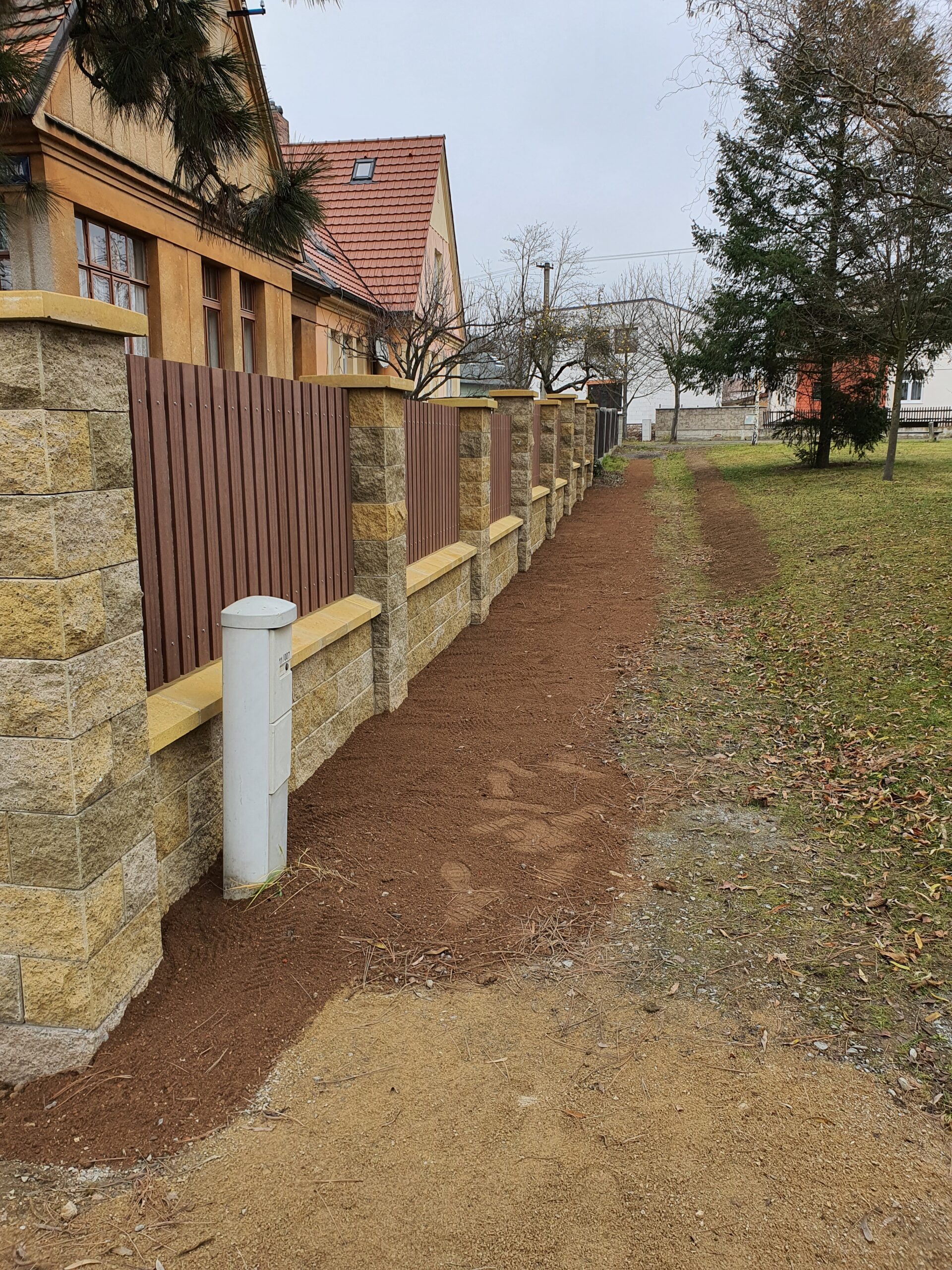 Po dokončení stavebních prací se pozemek upraví pro finální použití, například osázení trávou nebo výstavbu zahradních prvků.